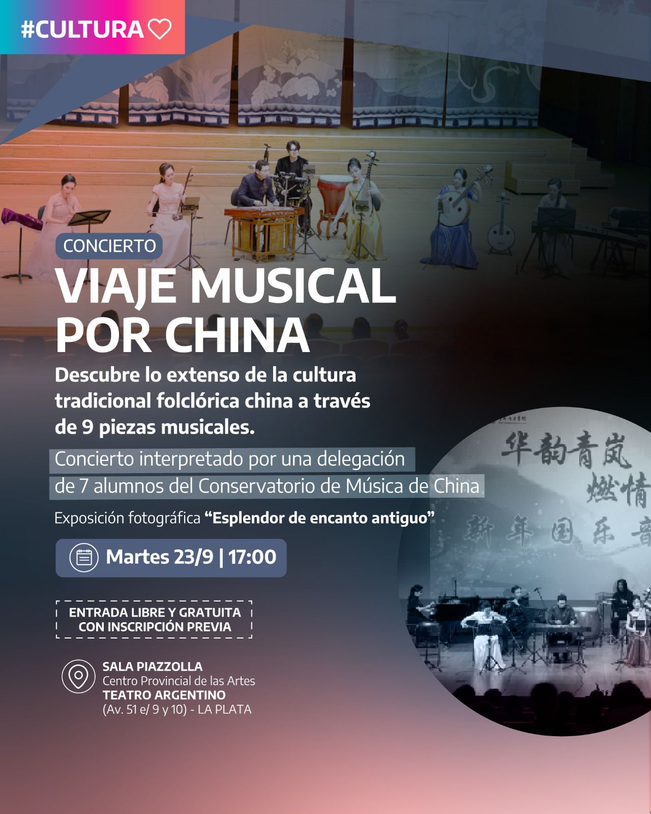 Se podrá disfrutar de la muestra fotográfica Esplendor de encanto antiguo. También el concierto Balada de la Pipa: Viaje Musical por China, con instrumentos tradicionales y artistas del Conservatorio de Música de China.