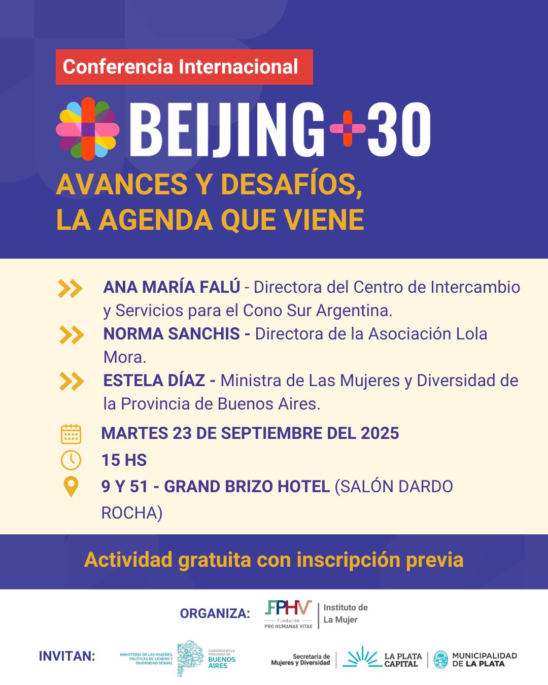 También se desarrollará la Conferencia Internacional Beijing +30