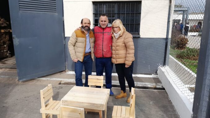 En una nueva iniciativa solidaria en contexto de encierro, personas privadas de libertad alojadas en una cárcel bonaerense de San Martín donaron mesas y sillas para niños y niñas realizadas con madera reciclada destinadas al club parroquial “Soy de la Virgen nomás” de la localidad de San Miguel.