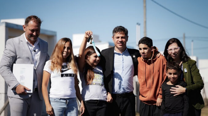 Ese mismo día, en Lincoln, Kicillof entregó 38 viviendas a familias del barrio Eduardo Mango, construidas mediante el programa Bonaerense II – Solidaridad con Municipios, con una inversión de $1.571 millones. Las casas cuentan con dos dormitorios y servicios básicos de agua, cloacas y electricidad. “Este es un día inolvidable para 38 familias que acceden finalmente a la casa propia. El derecho a la vivienda está en la Constitución, pero hace falta trabajar todos los días para que sea una realidad”, señaló el Gobernador.