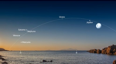 - Urano y Neptuno estarán más tenues y requerirán binoculares o telescopio.