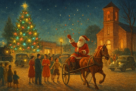 A las doce de la noche, en la playa de maniobras del ferrocarril Roca, el silbato de una máquina de ferrocarril se hacía sentir y explotaba el brindis en cada casa, en cada lugar donde la alegría era inmensa. También sonaban las campanas de la iglesia. Entonces, una caravana de vehículos se organizaba de forma espontánea. Una larga fila de autos, camionetas, camiones y hasta micros, circulaban en fila por las calles de Hinojo, mientras todos nosotros saludábamos ese hecho con una alegría inmensa en el alma. Era la magia que se tornaba al alcance de la mano. Incluso Papa Noel que había estado en casi todas las casas, solía pasar saludando arriba de un sulky de dos ruedas gigantes, tirado por un caballo criollo. Desde allí volaban golosinas que endulzaban hasta las estrellas de la noche.