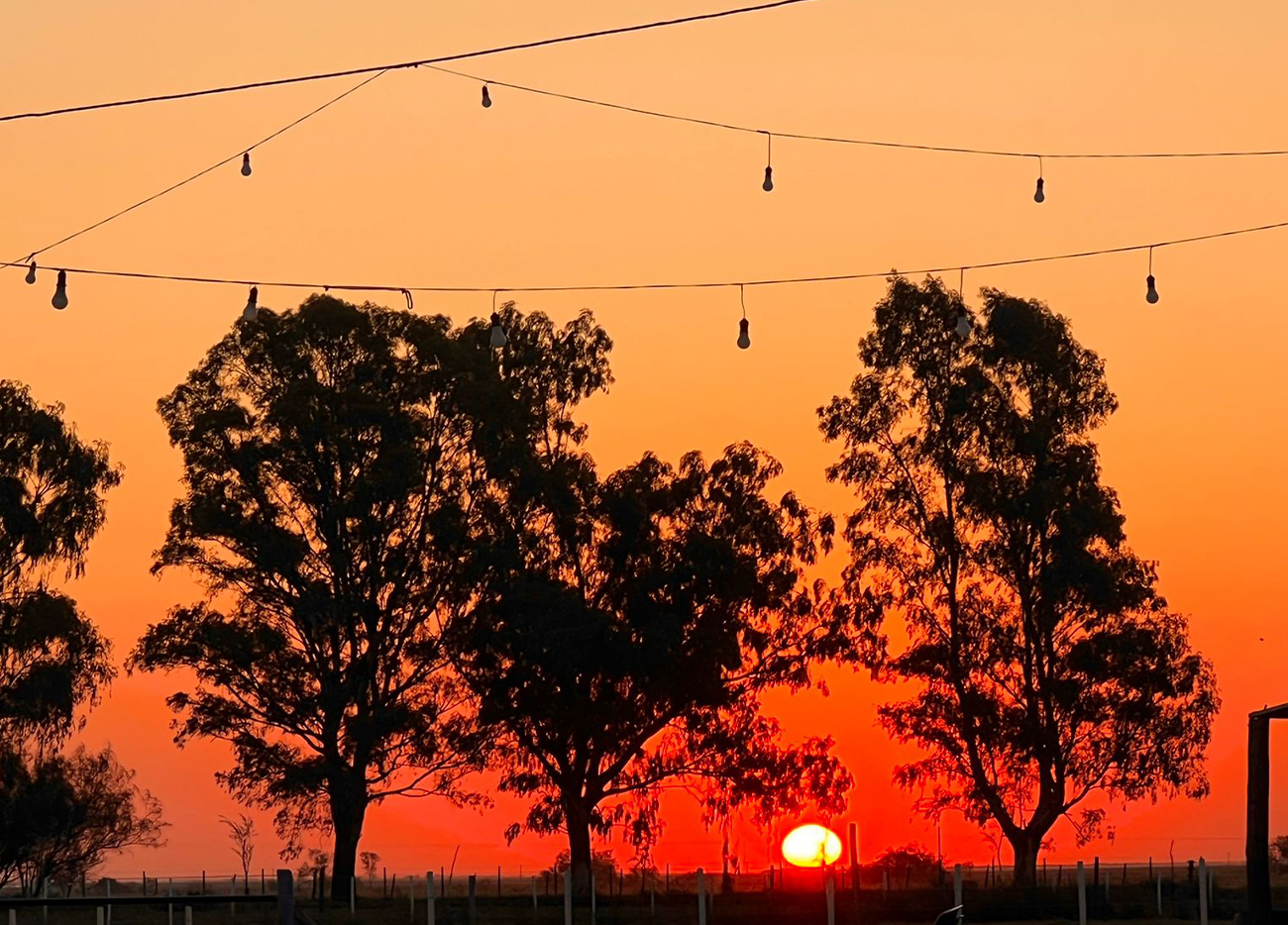 El paisaje pampeano se abre en todas direcciones: campos que parecen no terminar nunca y un cielo que domina la escena. La cercanía con la laguna suma atractivo para pescadores y observadores de aves, mientras que el parque del pueblo —cuidado con esmero— invita a caminar entre senderos, puentes de madera y una pequeña laguna donde anidan garzas.